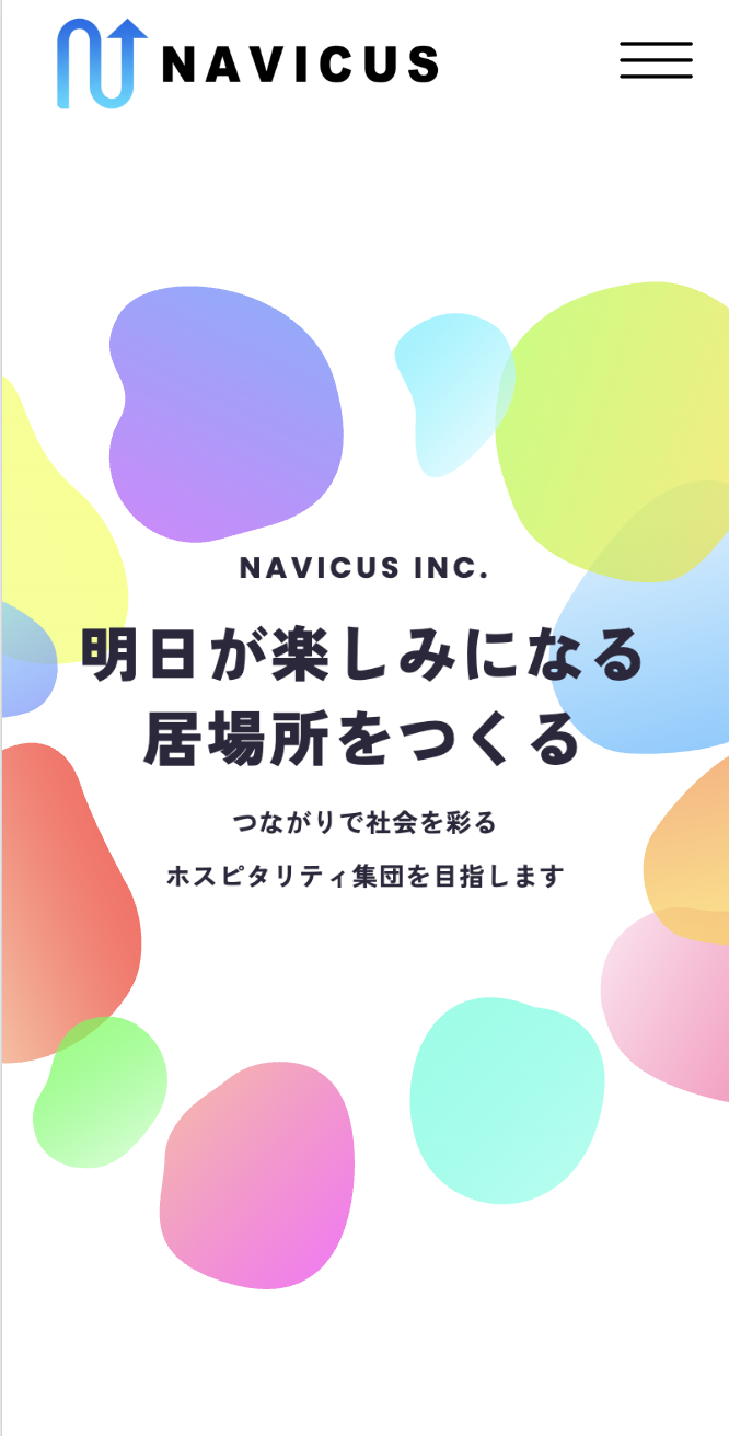 感情的(エモーショナル)と論理的(ロジカル)を組み合わせた「エモロジカル」という造語を使って、会社の価値観を表現しています。それに加えて、流体シェイプを豊富に使用する事で流動的で不定形な感情を視覚的にも表現したあしらいに感じられます。