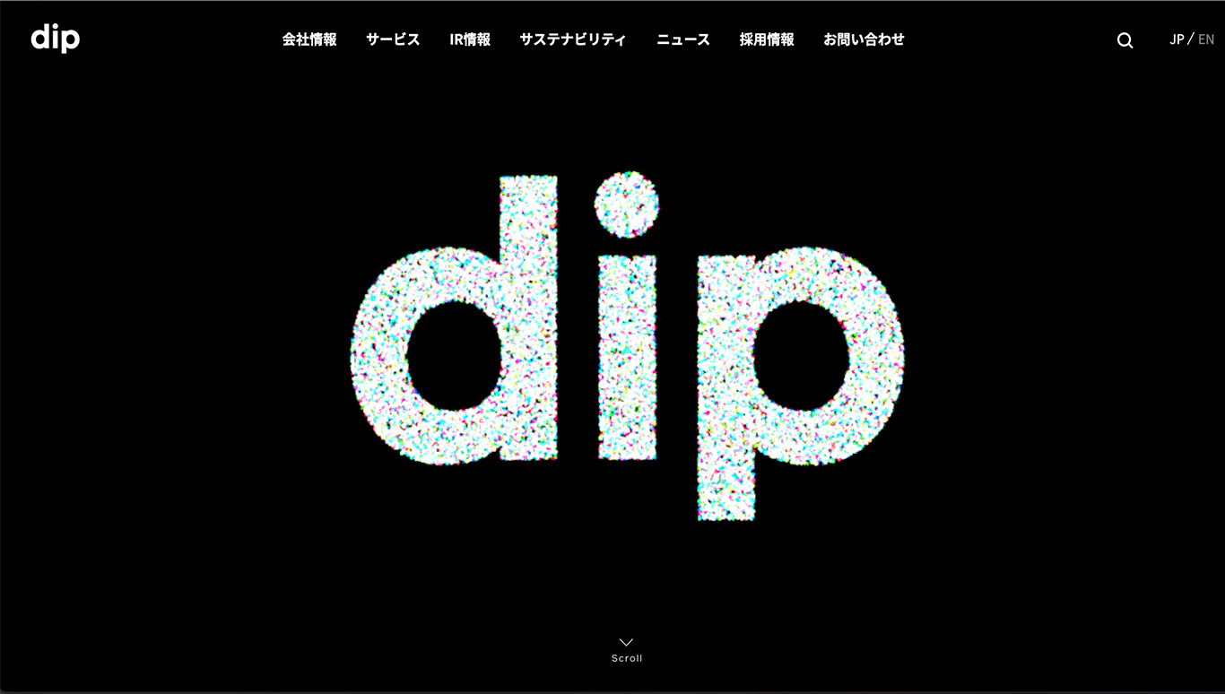 まずなんと言っても会社のロゴが全面に出されることで、訪問者の記憶に強烈な印象を与えます。またマウスをロゴの上で動かしてみると、ロゴが変化するという遊び心もあり、これだけで会社名をすぐに知ることができそうです。会社の理念やミッションを伝えるときには背景が暗めになるなど、伝えたいことが区別され際立つデザインになっています。